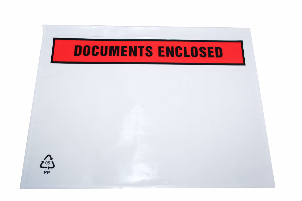 Självhäftande packsedelsfickor. Sätt i adresslappen eller packsedeln. Drag av skyddspappen, fäst på paketet.